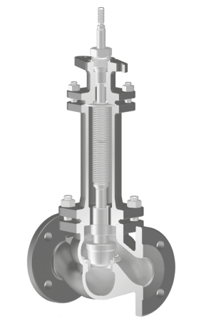 Vanne de régulation à passage droit avec bague de siège vissée, tige anti-éjection et guidage renforcé. Disponible avec actionneur pneumatique ou électrique selon les besoins d’automatisation. Conception robuste garantissant une régulation précise, une excellente étanchéité et un fonctionnement durable.